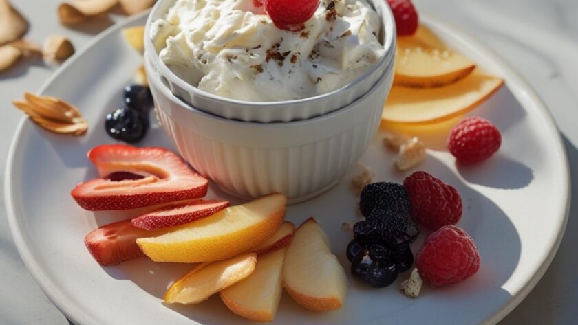 Prepare this dip up to 3 days in advance for parties. Keep fruits separately in airtight containers with a squeeze of lemon juice to prevent browning. Assemble the platter just before guests arrive for the freshest presentation.