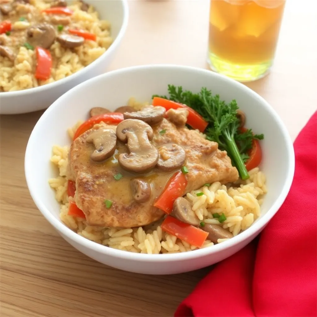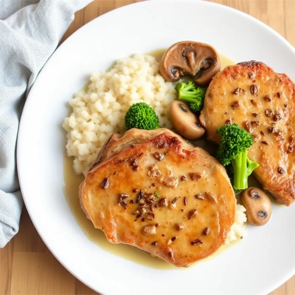 2. Creamy Mushroom Pork Chops and Rice