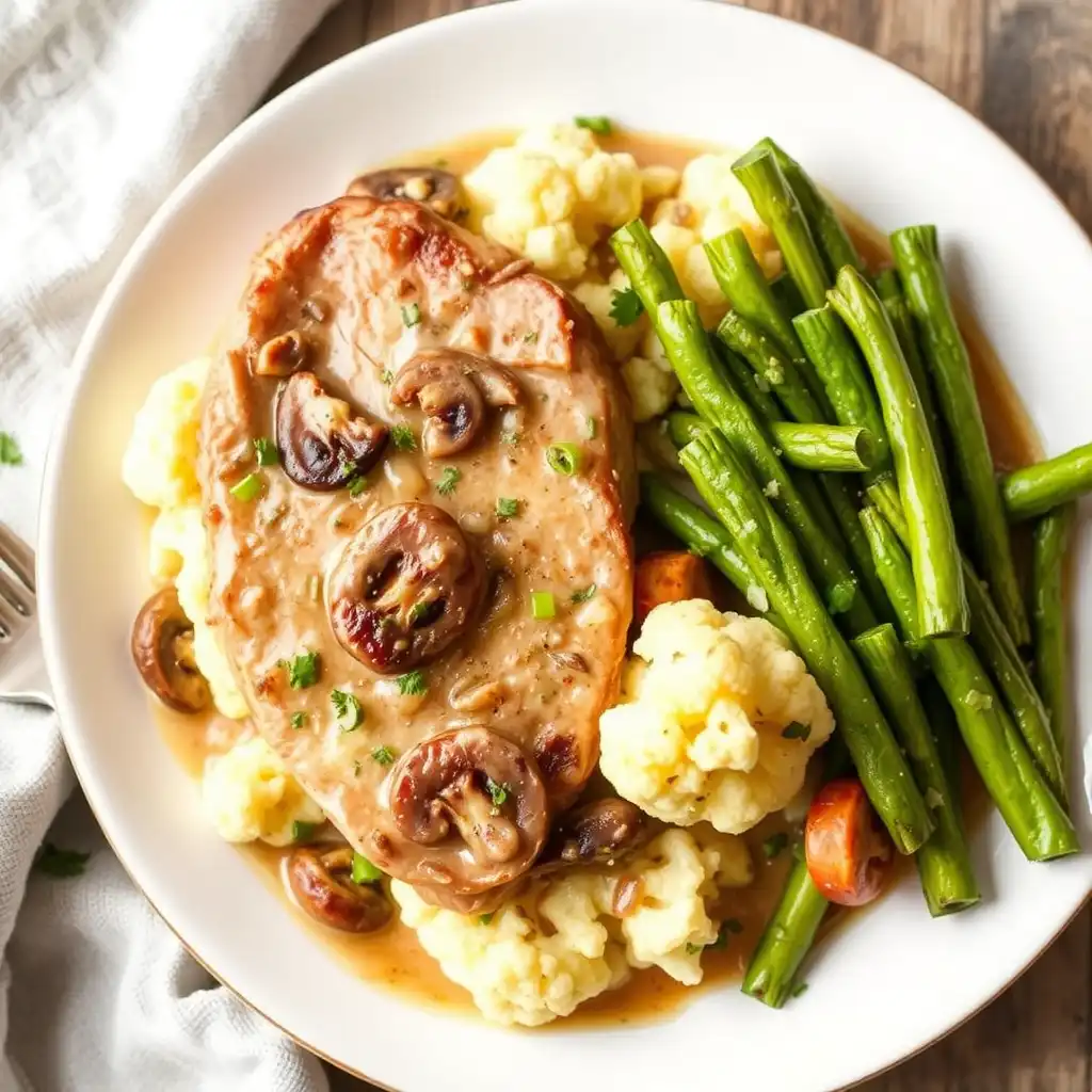 These meals vary depending on the ingredients used, the cut of pork chop, and whether the dish includes rice, potatoes, noodles, or vegetables. Creamy mushroom sauce makes the recipes richer and more comforting, while added vegetables can help round out the meal. For exact nutrition details, it is best to calculate the values based on the brands, portion sizes, and ingredients you use at home.