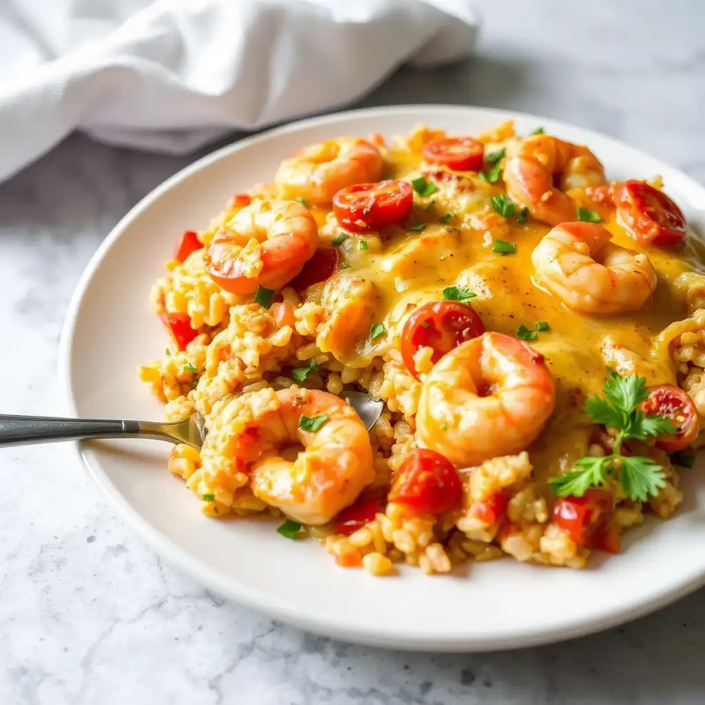 8. Cheesy Shrimp and Tomato Rice Bake