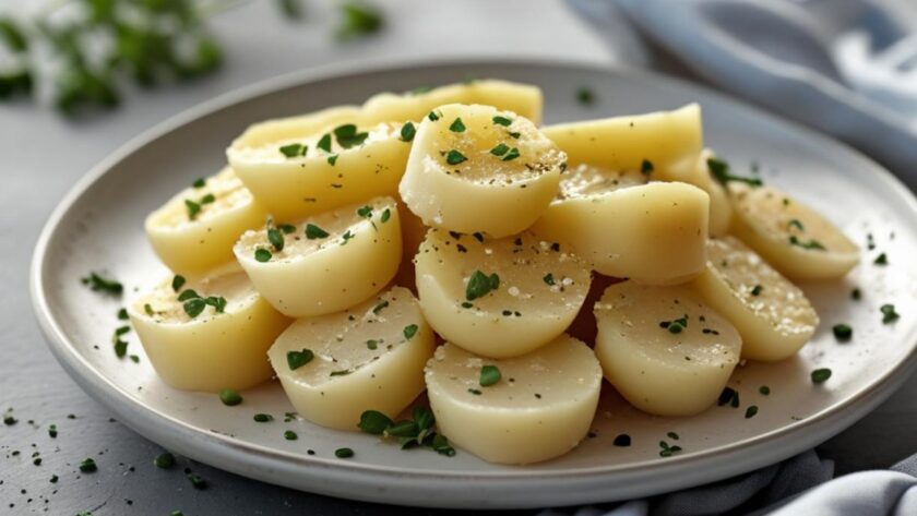 Potatoes are an excellent source of vitamin C, potassium, and fiber (especially when the skins are left on, though we peel for this recipe). The dairy provides calcium and protein. Enjoy this as a satisfying, energy-rich side dish in moderation.