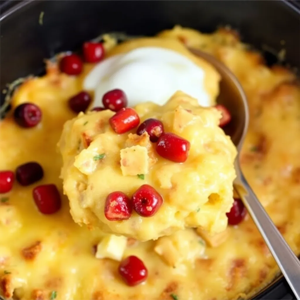 These recipes range from vegetable-based side dishes to richer comfort foods and sweet brunch options. In general, they are built around familiar holiday ingredients like potatoes, green beans, corn, apples, broth, dairy, bread, and herbs.