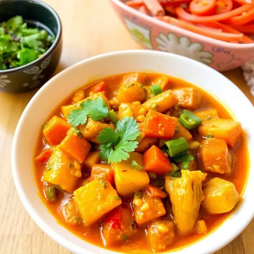 A mild, creamy vegetable curry made with mixed vegetables and a lightly spiced sauce. Best with sturdier vegetables that can handle freezing.