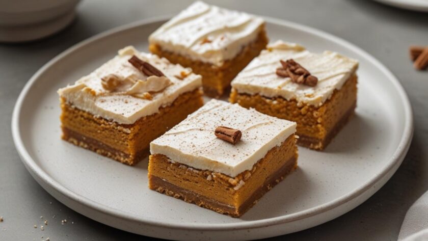 8. Once the pumpkin base is completely cool, spread the cream cheese frosting evenly over the top. For the best results when cutting, chill the pan for 30 minutes. These bars are now ready to serve, offering a flawless example of easy pumpkin dessert recipes that impress with minimal effort.