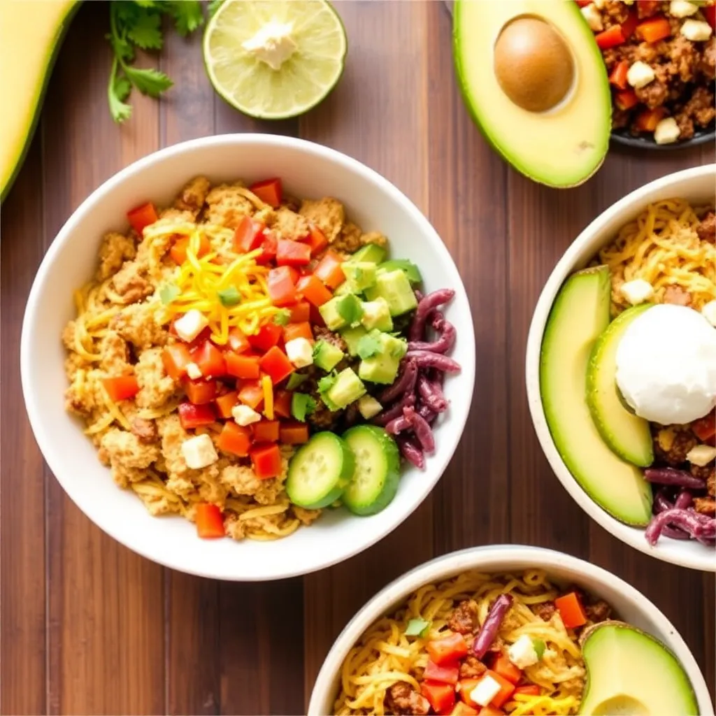 - Taco bowl night: chicken taco bowls with rice, avocado, cheese, and salsa