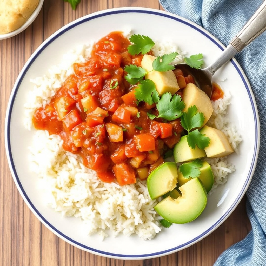 - Meatless meal: black bean chili with rice and avocado